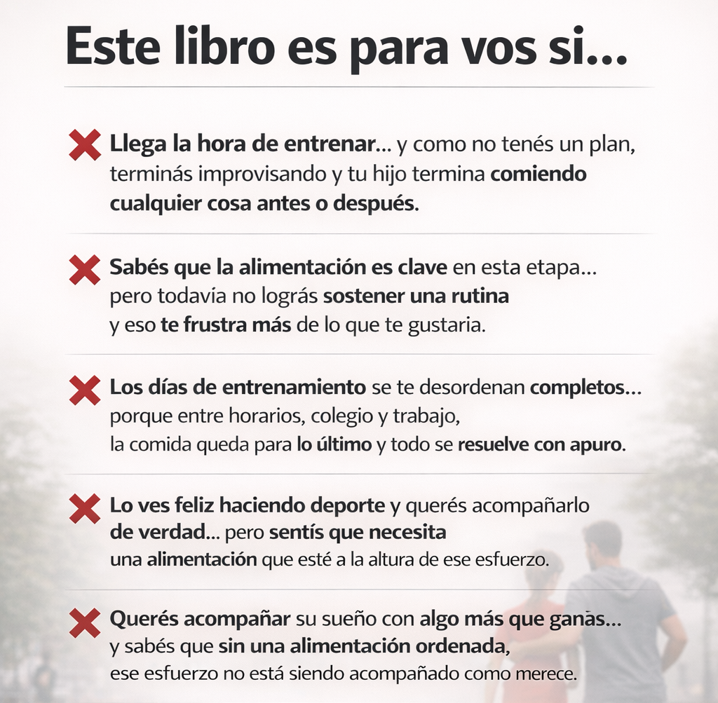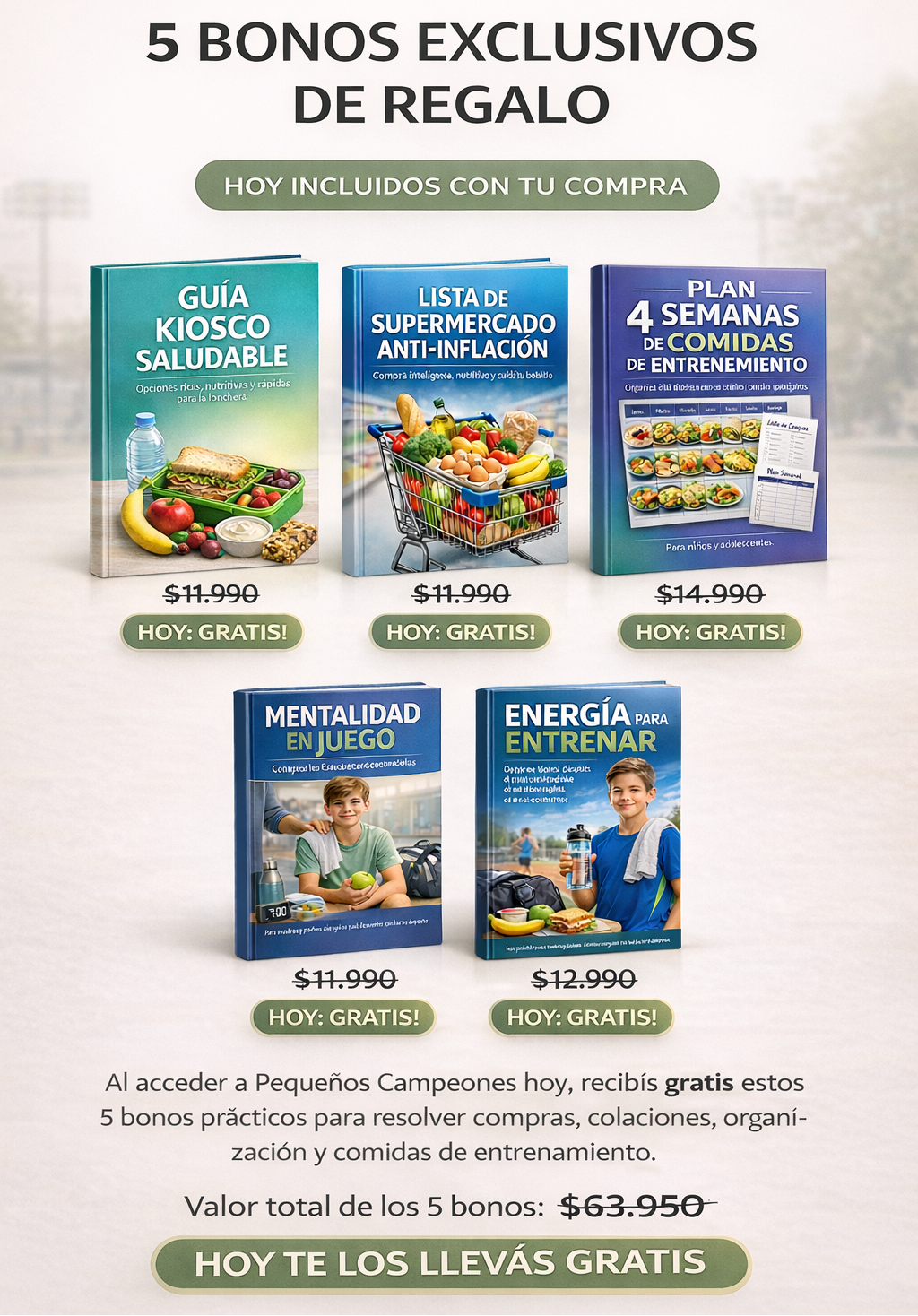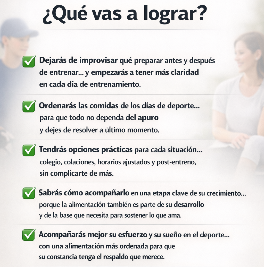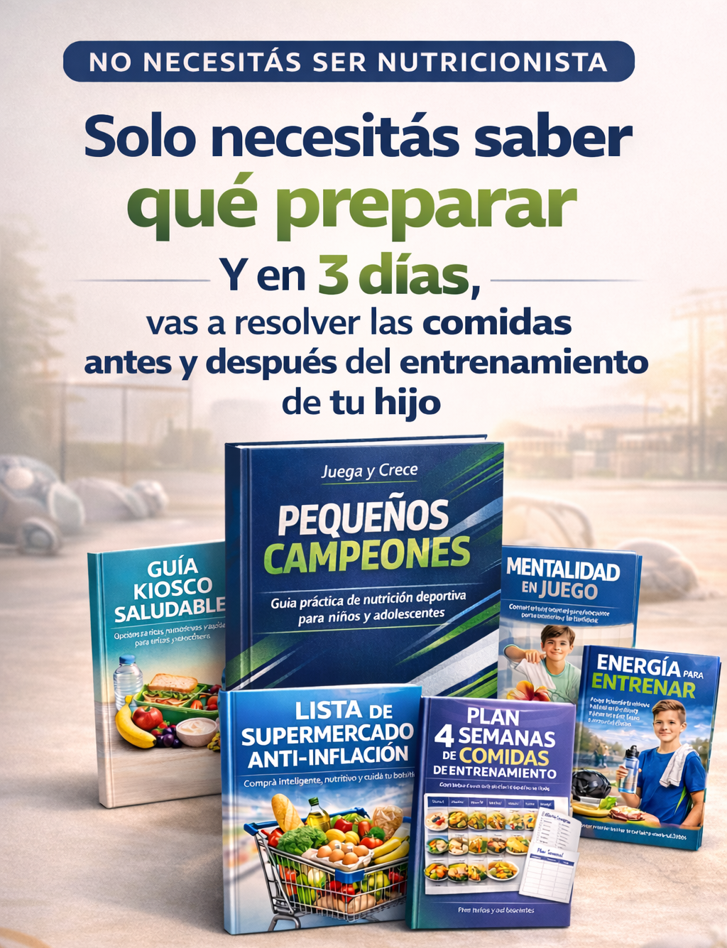 Yo vivía con la duda de qué preparar antes y después de entrenar. Mi hijo salía medio vacío, volvía con hambre y era caos. Con “Pequeños Campeones” armé una rutina simple y ahora ya sé qué hacer sin pensar tanto.